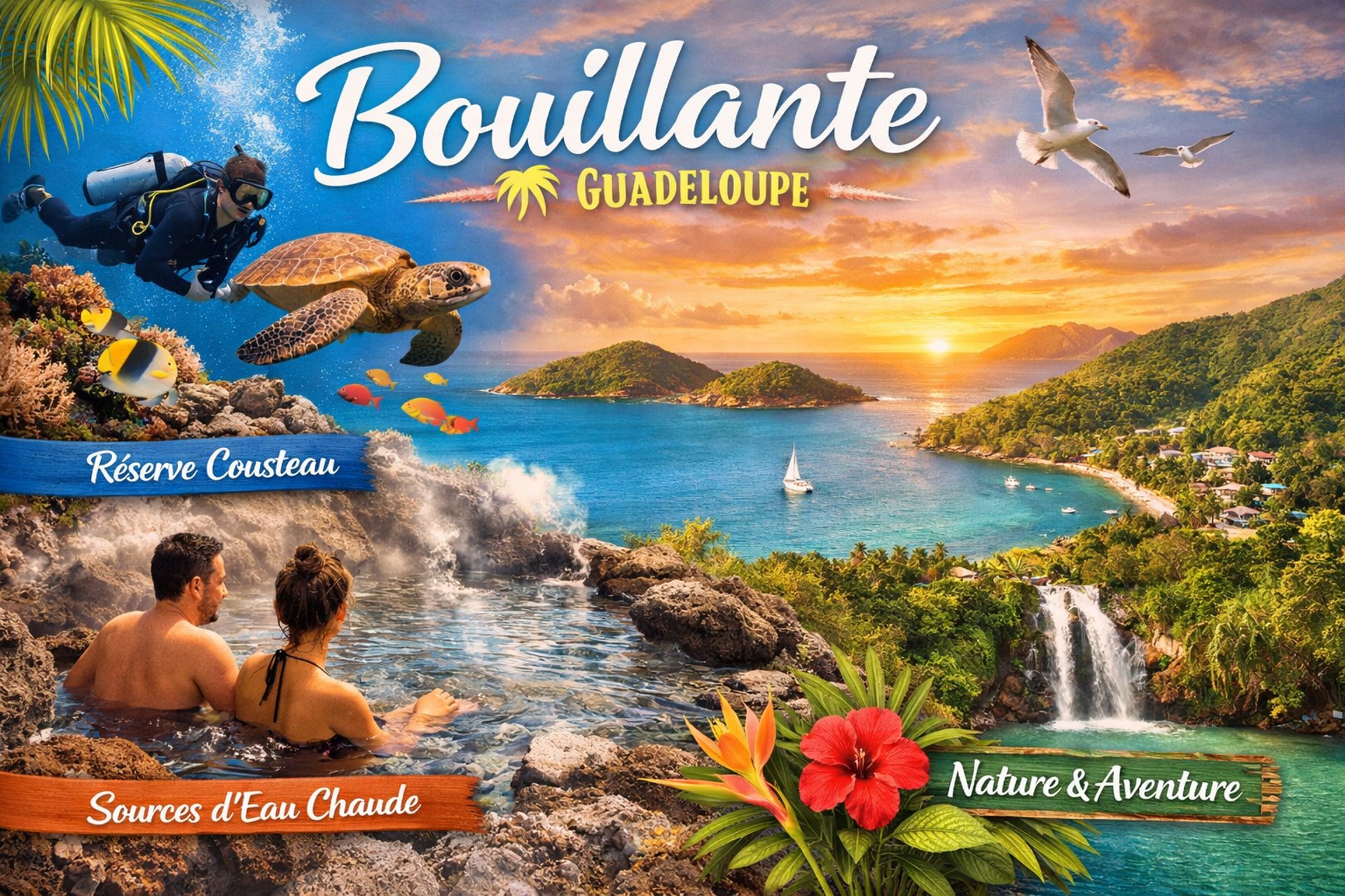 Sur la côte ouest de la Basse-Terre, Bouillante est une commune emblématique de la Guadeloupe, réputée pour ses fonds marins exceptionnels, son environnement préservé et son atmosphère paisible. Bordée par la mer des Caraïbes et dominée par les reliefs volcaniques du parc national de la Guadeloupe, Bouillante séduit les voyageurs en quête de nature, de détente et d’authenticité.